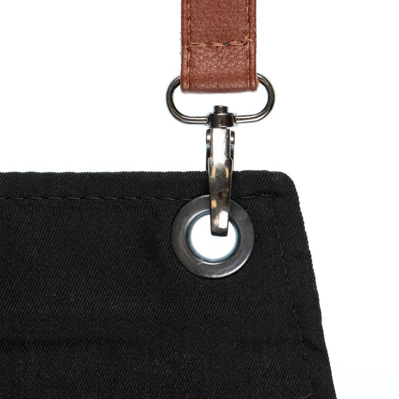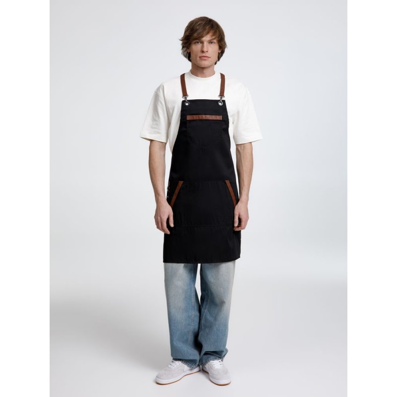 Функциональные карманы на груди и подоле эффектно украшают фартук, изготовленный из качественной дышащей плотной износостойкой ткани. Благодаря динамичным крестообразным лямкам он отлично сидит как на мужской, так и на женской фигуре. Кроме того, съемные лямки упрощают процесс стирки в стиральной машине.