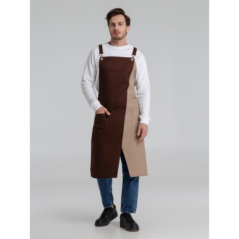 Фартук с длинными регулируемыми лямками и удобными карманами.
