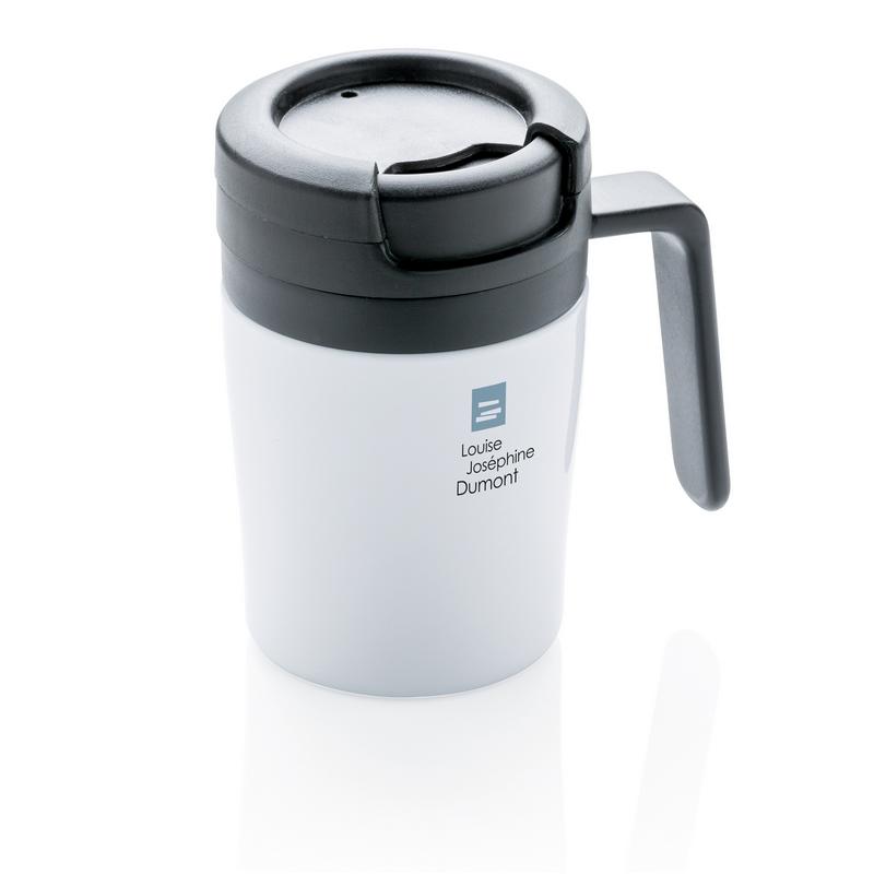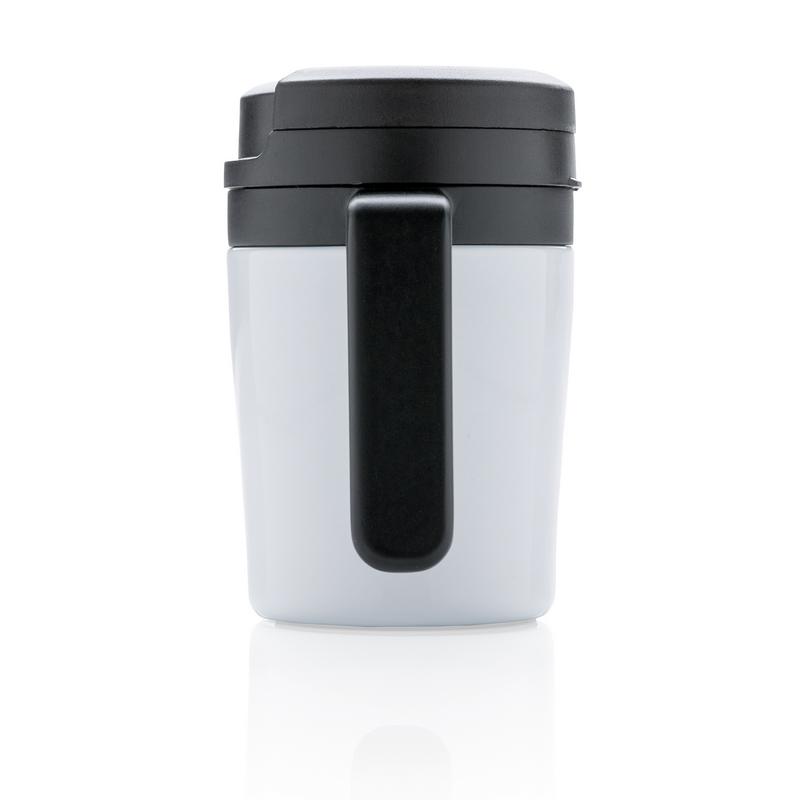 Высота кофейной термокружки Coffee-to-go составляет всего 8 см, поэтому она идеально подойдет для любой кофе-машины. Кружка изготовлена из нержавеющей стали, а удобная ручка, крышка с поворотным механизмом и внутренняя колба - из высококачественного полипропилена. Не подходит для мытья в посудомоечной машине. Объем термокружки составляет 160 мл. Зарегистрированный дизайн®