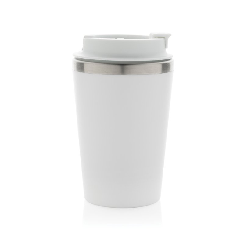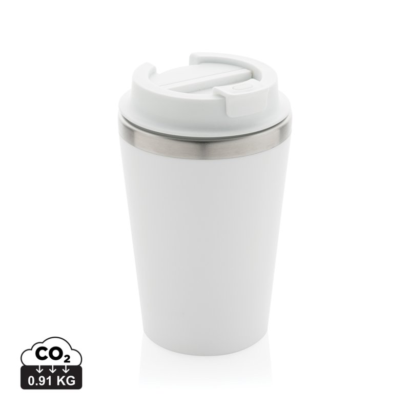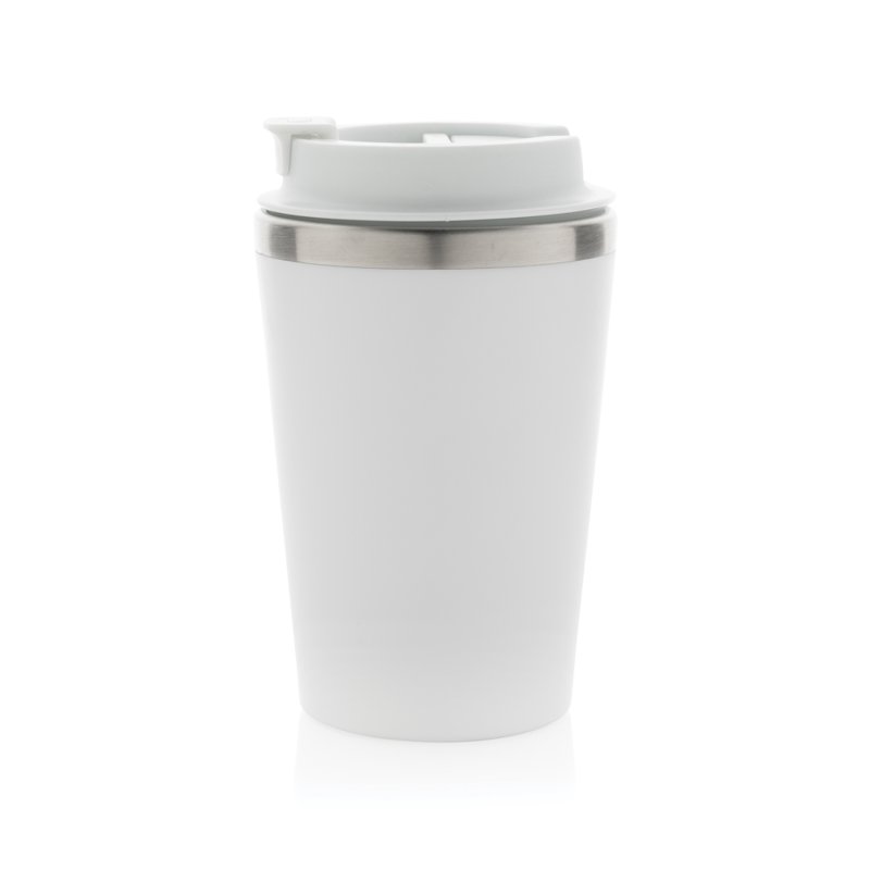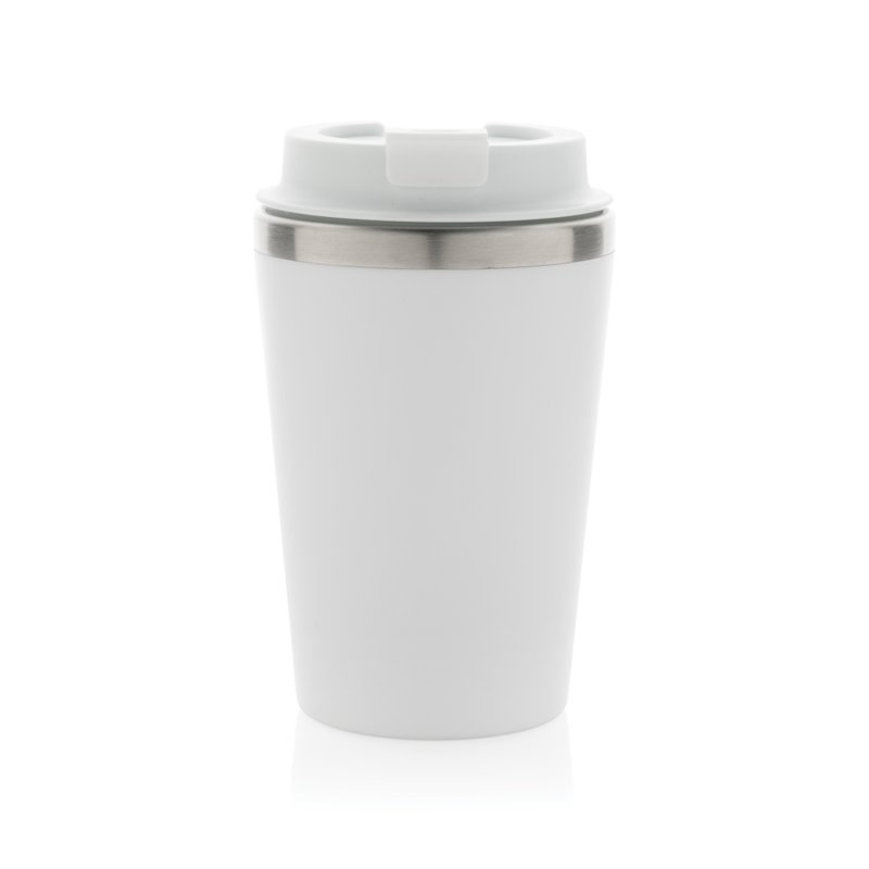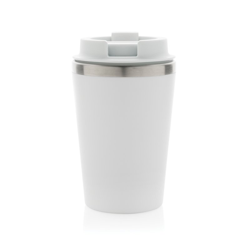 Лучший компаньон для будних дней — термокружка Java объемом 350 миллилитров. Это идеальный объем для любимого ароматного кофе или чая, выпить который вы можете и на работе, и в поездке, и на прогулке. Легкая, герметичная и стильная термокружка станет отличным подарком для тех, кто всегда находится в движении и заботится об экологии. Откажитесь от одноразовых кофейных стаканчиков в пользу долговечной кружки: ее внутренняя часть изготовлена из нержавеющей стали, а внешняя — из переработанного полипропилена. Термокружка Java сохраняет напиток холодным до 4, а горячим — до 2 часов. Не содержит BPA. Сертифицировано RCS. Эта сертификация полностью контролирует путь поставок переработанных материалов и гарантирует их наличие в изделии