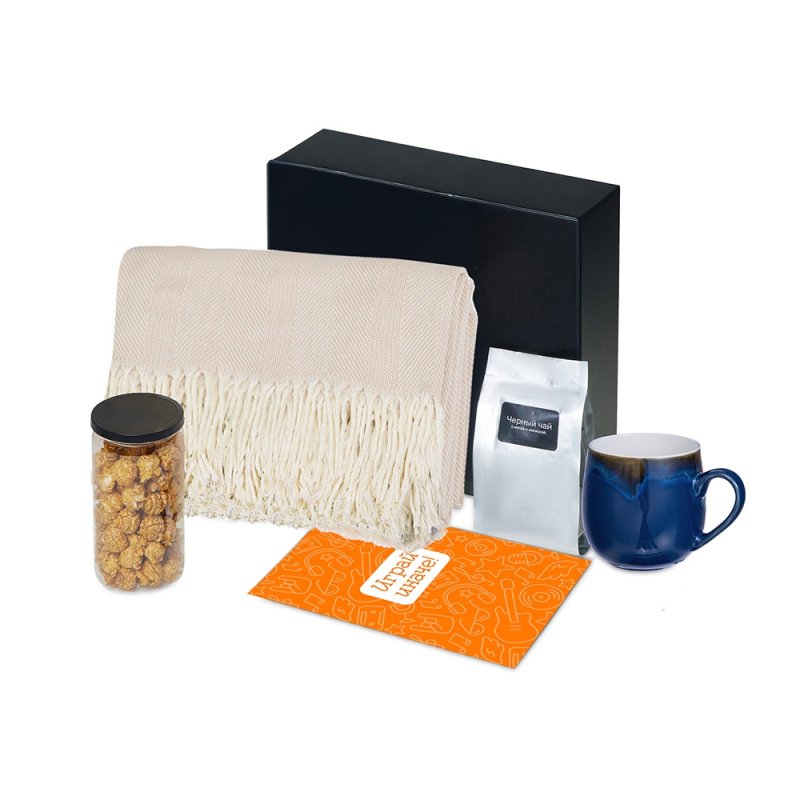 - Материал товара:плед - 100% хлопок, кружка - костяной фарфор с покрытием софт-тач, чай - пластик, попкорн - пластик, металл, мешок - нетканый материал (спанбонд), коробка - картон