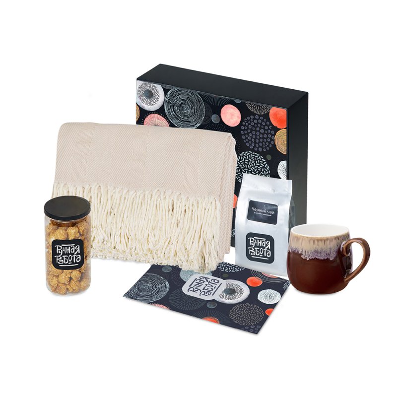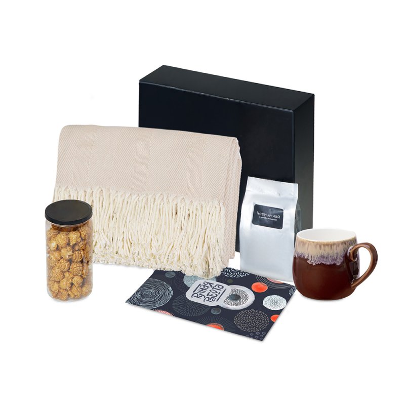- Материал товара:плед - 100% хлопок, кружка - костяной фарфор с покрытием soft-touch,чай - пластик, попкорн - пластик, металл, мешок - нетканый материал (спандонд), коробка - картон