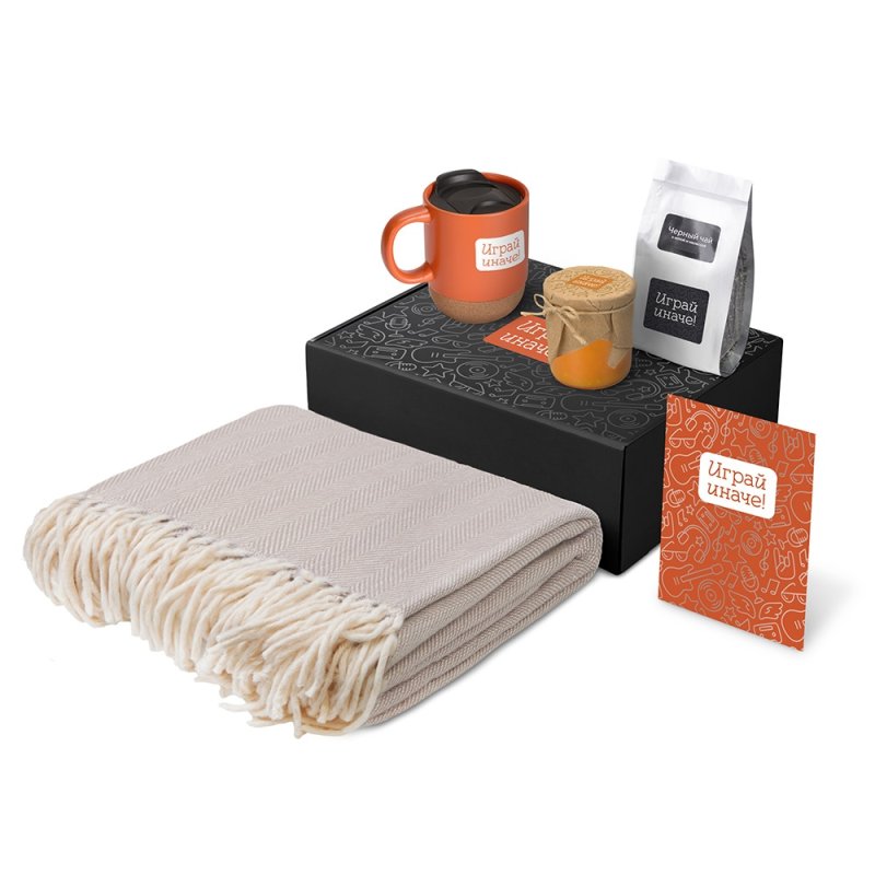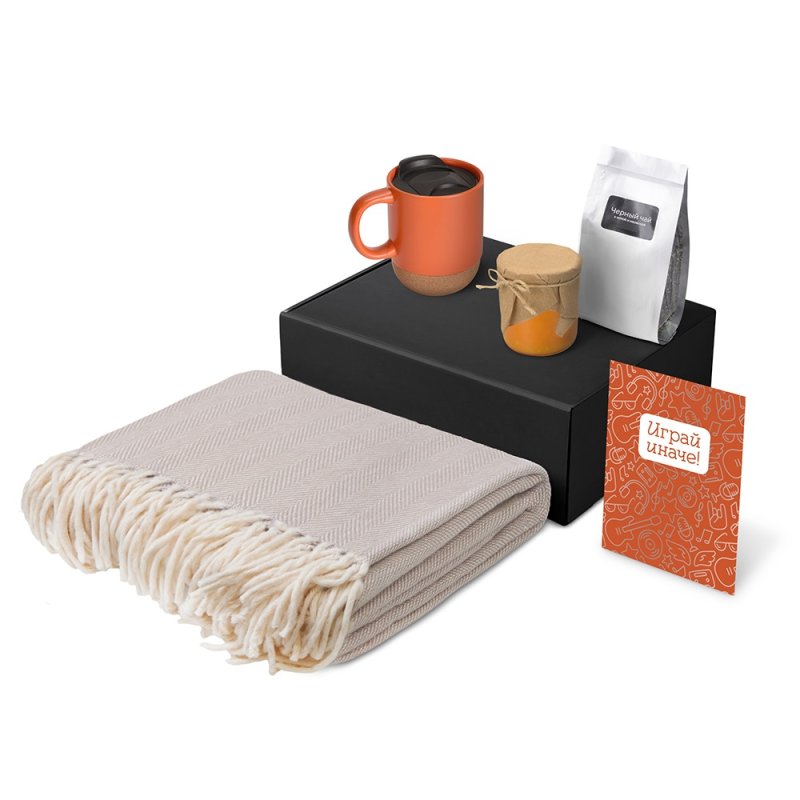 - Материал товара:плед - 100% хлопок, кружка - керамика, пробка, чай -пластик, мешок - нектаный материал (спанбонд), коробка -картон