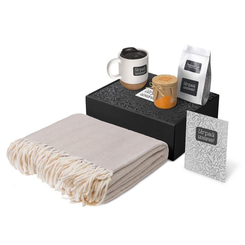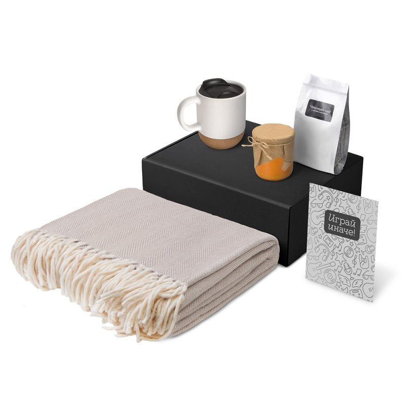 - Материал товара:плед - 100% хлопок, кружка - керамика, пробка, чай -пластик, мешок - нектаный материал (спанбонд), коробка -картон
