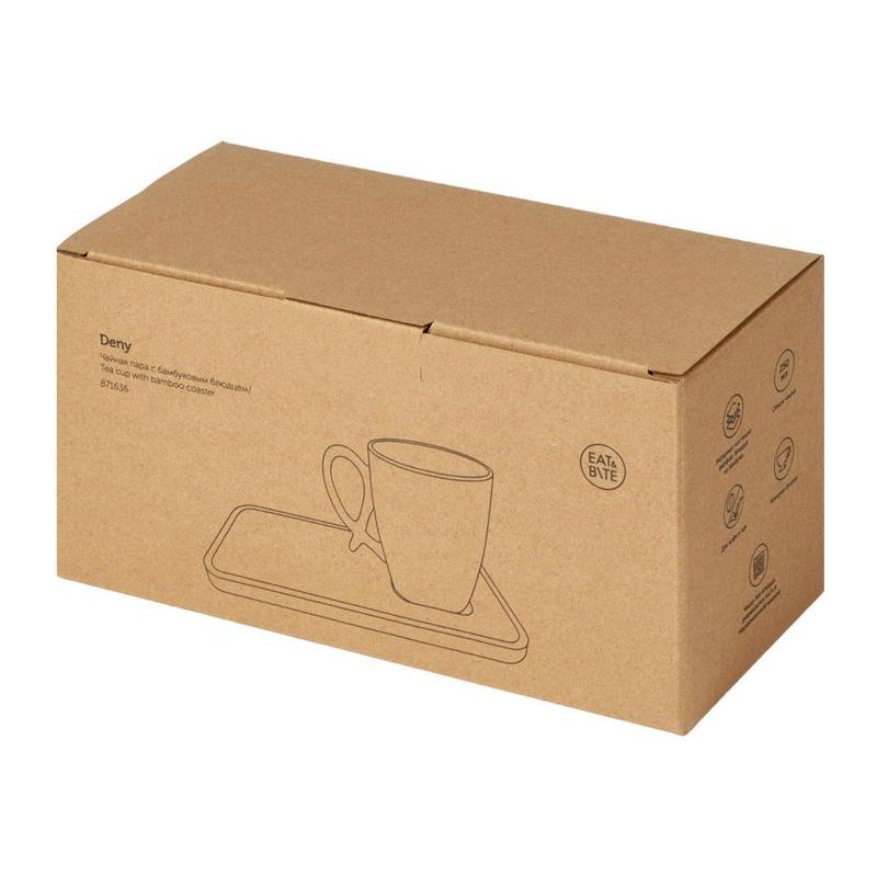 Бамбуковое блюдце имеет выемку для чашки, поэтому Deny можно аккуратно разместить на столе, не занимая много места. Также на блюдце удобно класть пирожные, шоколад или печенье благодаря его прямоугольной форме.
