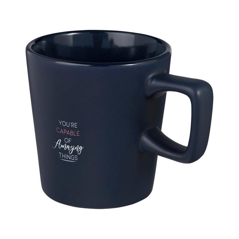 Керамическая кружка в современном дизайне с матовой отделкой. Объем 280 мл. Можно мыть в посудомоечной машине (все способы декорирования). В подарочной коробке из переработанного картона.