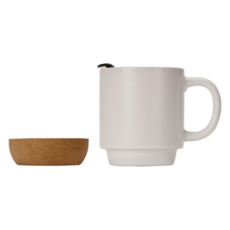 Керамическая кружка Denpasar оснащена пробковым дном, которое позволяет приземлять ее на стол мягко, без скольжения и без стука, а также крышкой, которая позволит вашим напиткам дольше оставаться горячими. А еще помимо практической функции пробковое дно выполняет и эстетическую: смотрите, как красиво сочетается керамика с пробкой, как две текстуры — природная неровная и матовая— взаимодополняют друг друга!