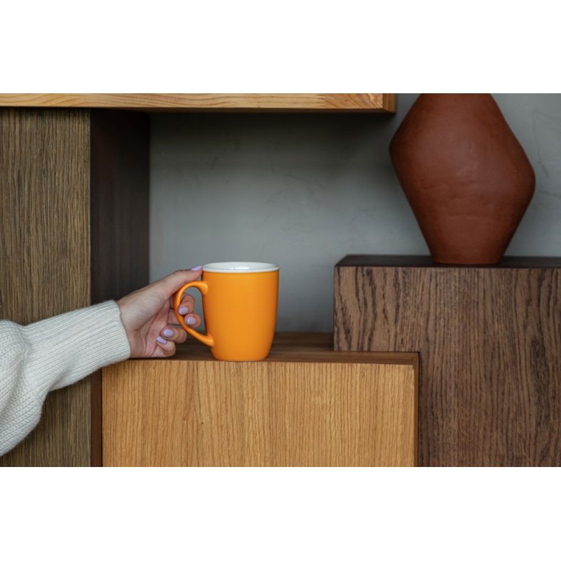 Матовая и будто бы бархатистая глазурь, отогнутый кремово-белый край и плавная форма — кружку Doppel настолько приятно держать в руках, что с ней не захочется расставаться.