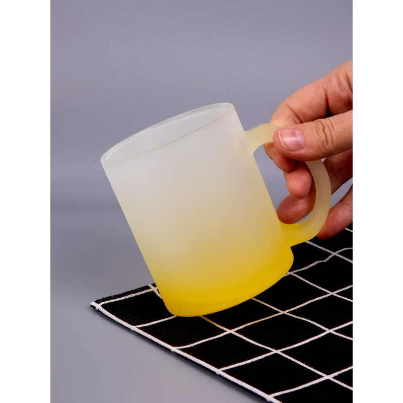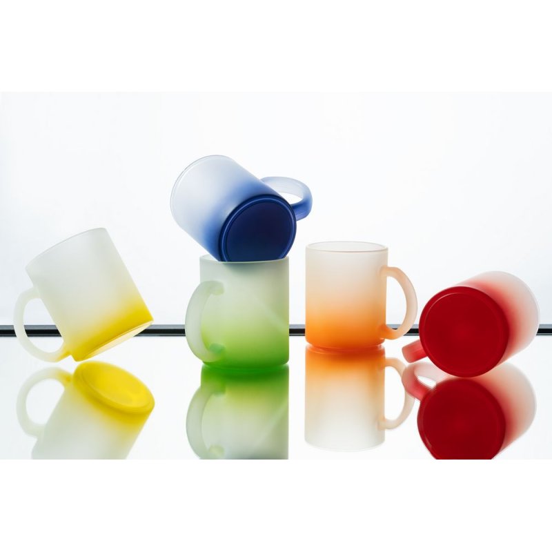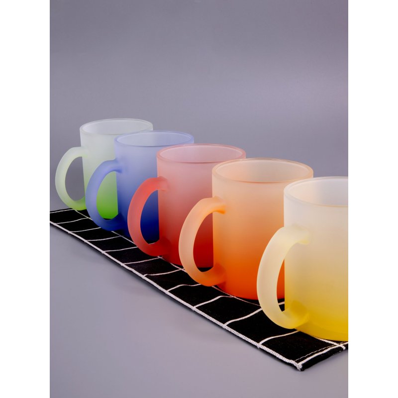 Яркая стеклянная кружка Grade Fade с эффектом омбре и плавным переходом цвета привлекает внимание оригинальным дизайном, а матовая поверхность приятна на ощупь. Подходит для сублимационной печати.