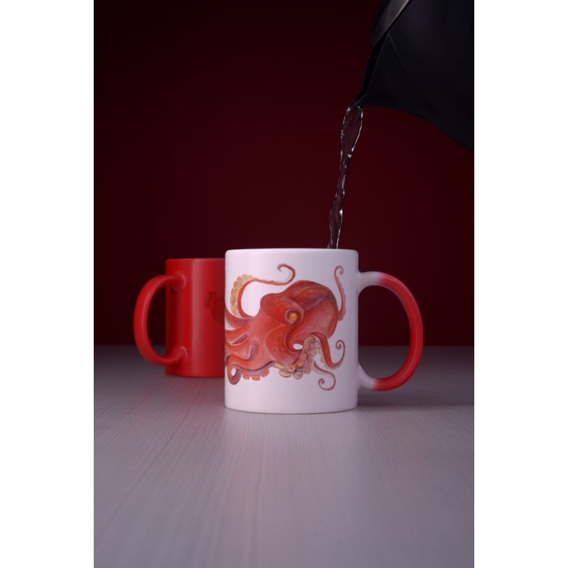 Кружка «Хамелеон» обладает интересным эффектом: стоит налить горячую воду, и ее цвет поменяется на белый.