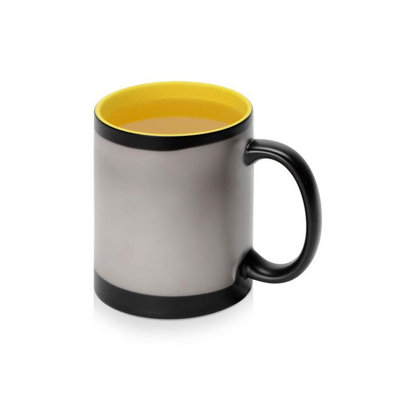 Кружка-хамелеон меняет свой облик, едва вы нальете в нее горячий напиток: черная поверхность постепенно изменяет свой цвет, становясь белой. Внутренняя часть кружки — яркая, цветная, что можно красиво обыграть, удачно сочетая ее с цветом вашего лого или гаммой изображения.