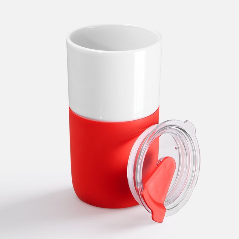 Прочная керамика — и напиток не впитает посторонних запахов и вкусов, силиконовый рукав — и стакан не обожжет руки, плотная крышка — и содержимое не прольется и не остынет слишком быстро.
