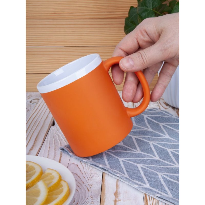 Кружка классической формы StopSpot привлекает внимание своим дизайном и покрытием. Яркая матовая поверхность выигрышно контрастирует с глянцевым белым ободком — так кружка выглядит необычно, а еще меньше пачкается во время эксплуатации.