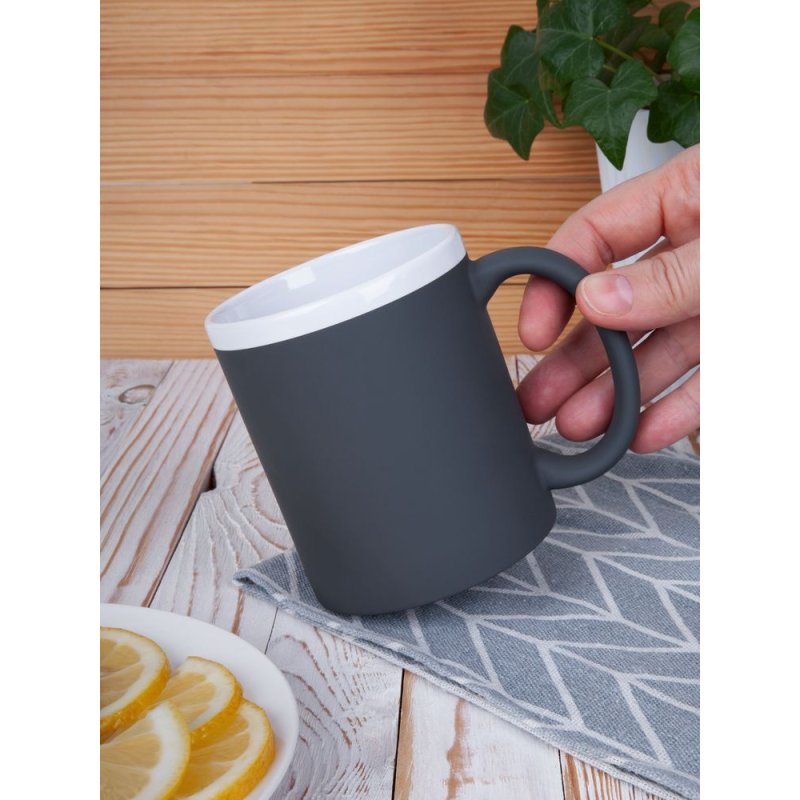 Кружка классической формы StopSpot привлекает внимание своим дизайном и покрытием. Яркая матовая поверхность выигрышно контрастирует с глянцевым белым ободком — так кружка выглядит необычно, а еще меньше пачкается во время эксплуатации.