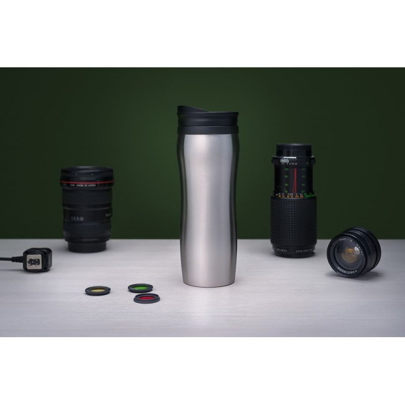 Двухслойная конструкция из пластика внутри и нержавеющей стали снаружи сохраняет напитки горячими в течение 1 часа, холодными — 2 часов.