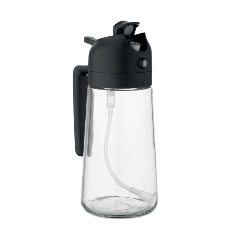 Стеклянный диспенсер для масла 2-в-1 с крышкой из полипропилена и трубочкой из полиэтилена. Объем 450 мл.