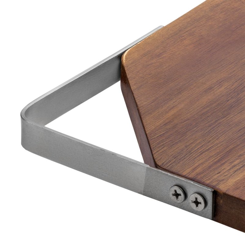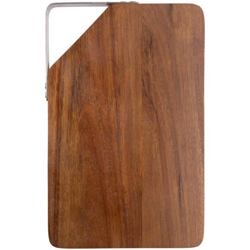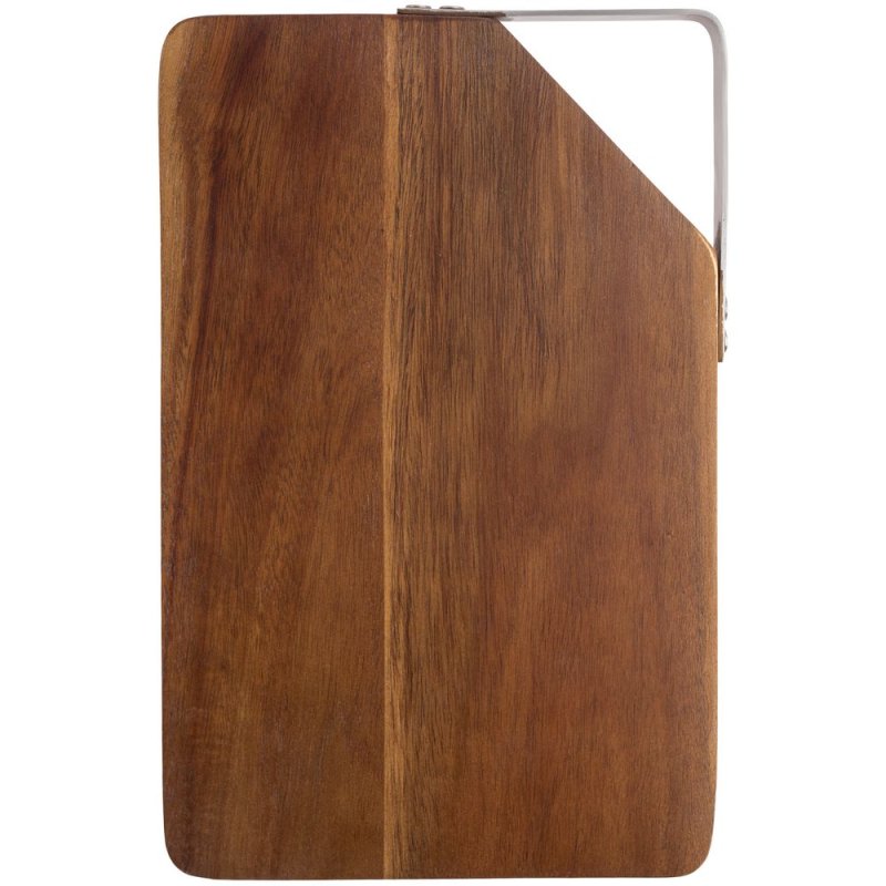 Качественная разделочная доска — необходимый предмет на любой кухне. Доска выполнена из экологически чистого и прочного материала — древесины акации. Она обладает высокой твердостью, водоотталкивающими свойствами и не впитывает запахи. Для удобства размещения на стене в верхнем углу предусмотрен подвес из металла.