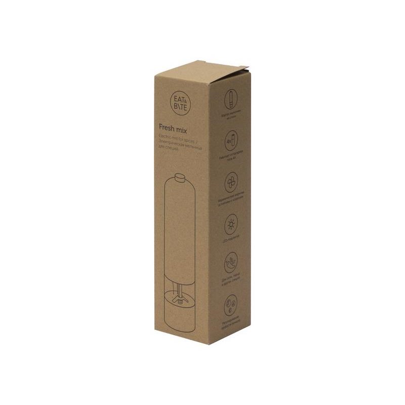 Электрическая мельница Fresh mix от Eat&Bite подходит для измельчения крупной соли, перца и других специй. Для этого достаточно просто нажать на кнопку на корпусе устройства.