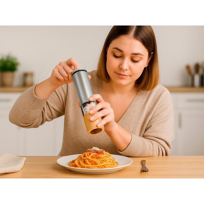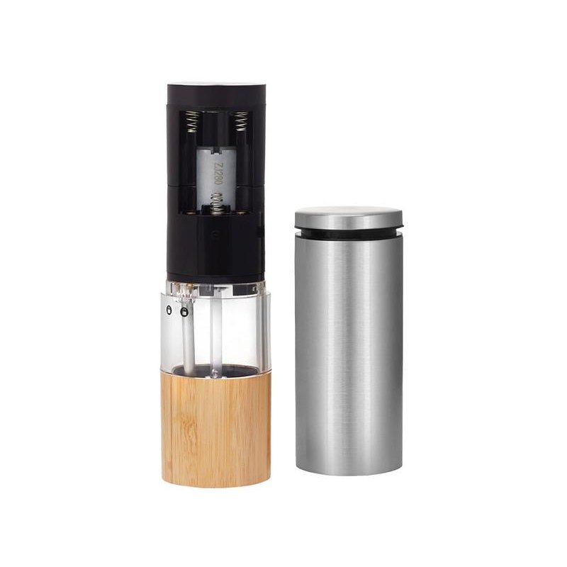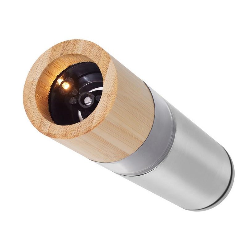 Элегантный и практичный корпоративный подарок, который добавит вкуса в любую кухню — электрическая мельница для специй, сочетающая трендовый дизайн и современную функциональность. Работает от 6 батареек AAA и легко справляется с солью, перцем и другими специями.