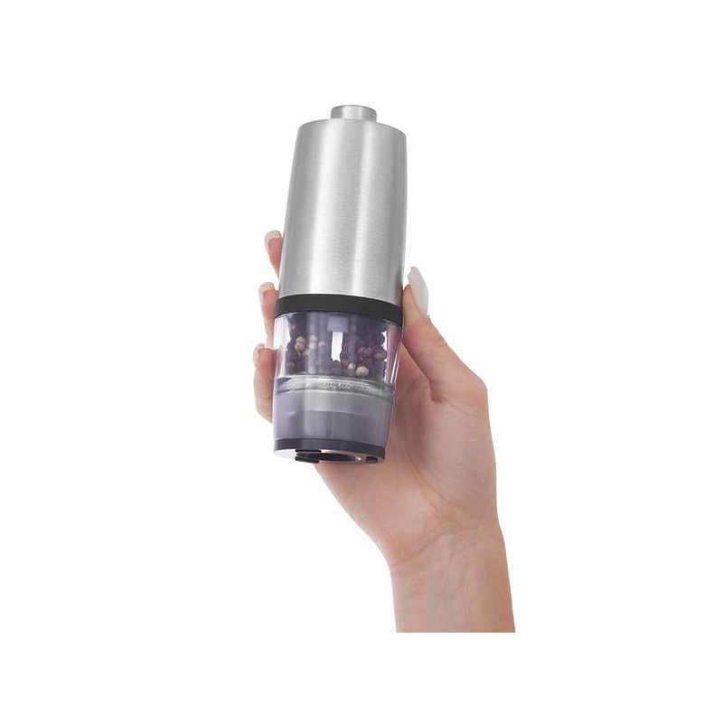Современная и удобная электрическая мельница для соли, перца и других специй. Работает от 4 батареек AAA (не входят в комплект) — одним нажатием измельчает специи до нужной степени помола.