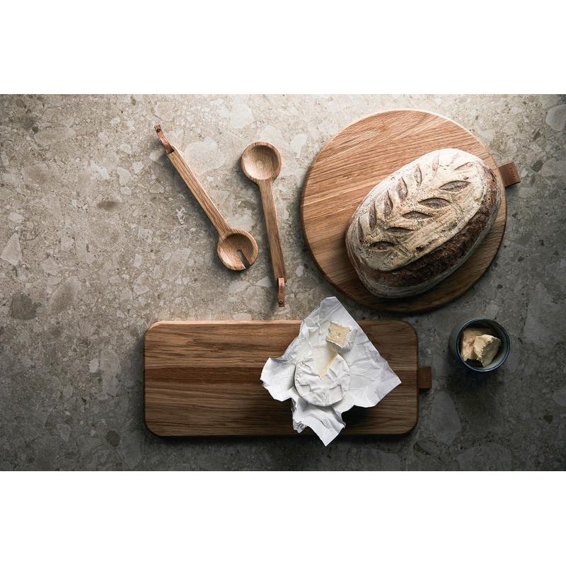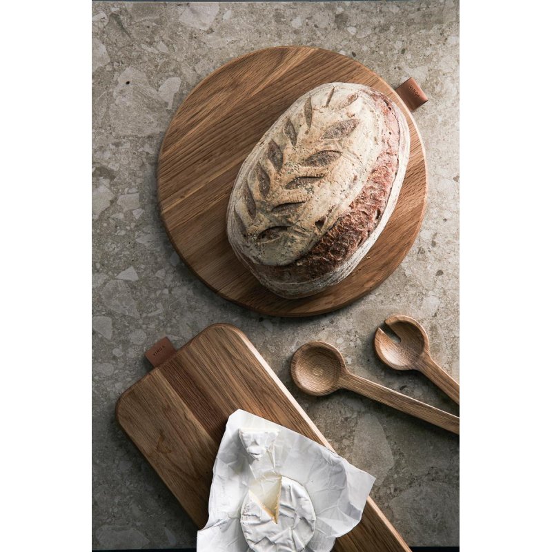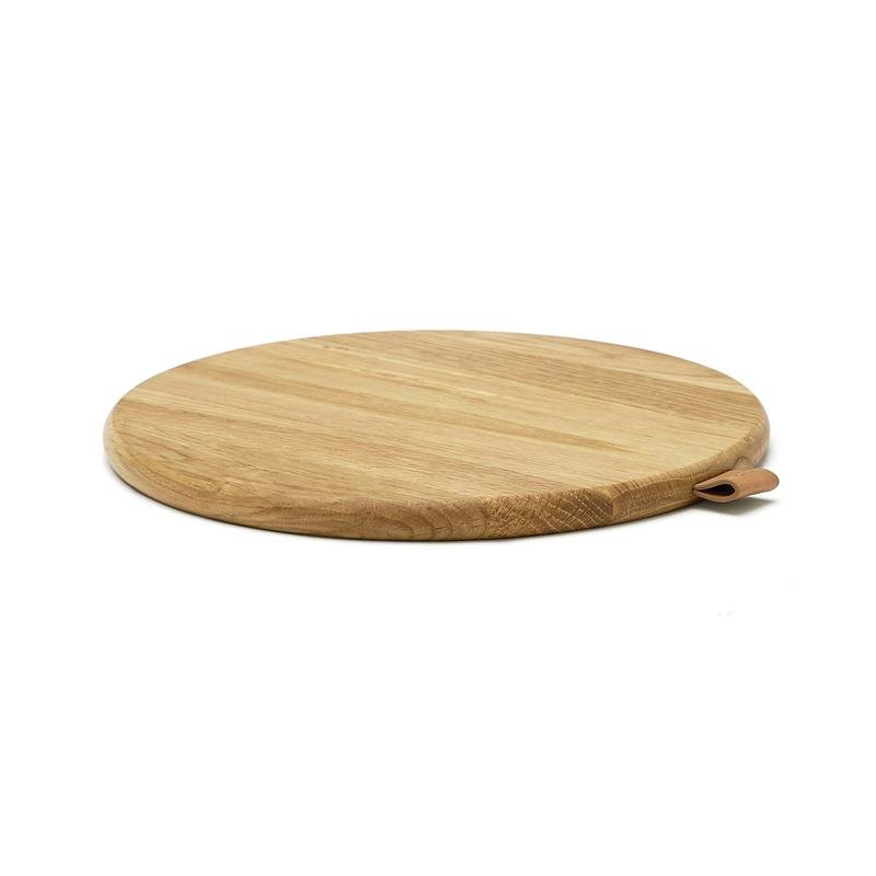 Круглая доска из натурального дуба. Отлично подходит для сервировки ваших любимых блюд. Изготовлена из древесины дуба, сертифицированной FSC. Украшена аккуратной деталью под кожу.