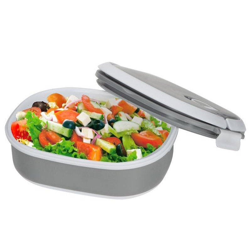 Материалы — пластик и термопластичная резина, безопасные для контакта с пищей и рассчитанные на длительное использование. Ланч-бокс плотно закрывается, что помогает избежать проливаний, однако не является полностью герметичным — идеально для твёрдых и густых блюд.