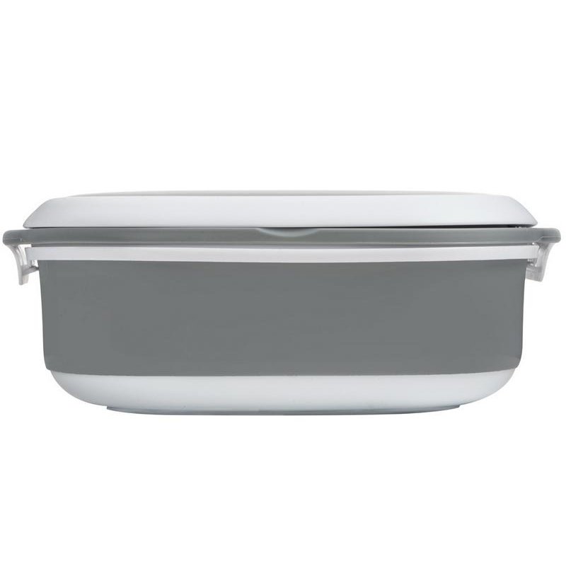 Контейнер оснащён удобными ручками и надёжными защёлками, которые обеспечивают плотное закрытие. Крышка дополнена специальным клапаном для выхода пара — удобно при разогреве в микроволновке.