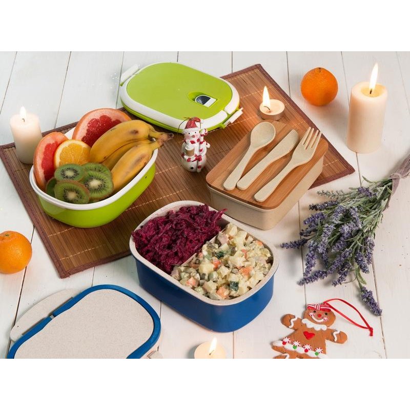 Ланч-бокс Shen - прекрасный подарок для ценителей необычных и полезных сувениров. Его главные особенности - контрастный дизайн и экологичный материал. У модели есть удобные складывающиеся ручки для переноски. Ланч-бокс на 50% выполнен из пшеничного соломенного волокна и на 50 % – из пищевого пластика.