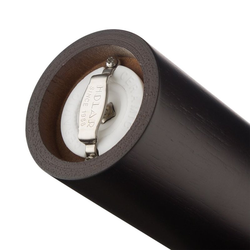 Мельница для перца в современном дизайне поможет во время готовки и украсит стол. Корпус выполнен из каучукового дерева — натурального материала повышенной прочности, который полностью безопасен для здоровья. Износостойкие жернова из качественной керамики хорошо измельчают кристаллы до состояния порошка. Степень помола можно регулировать.