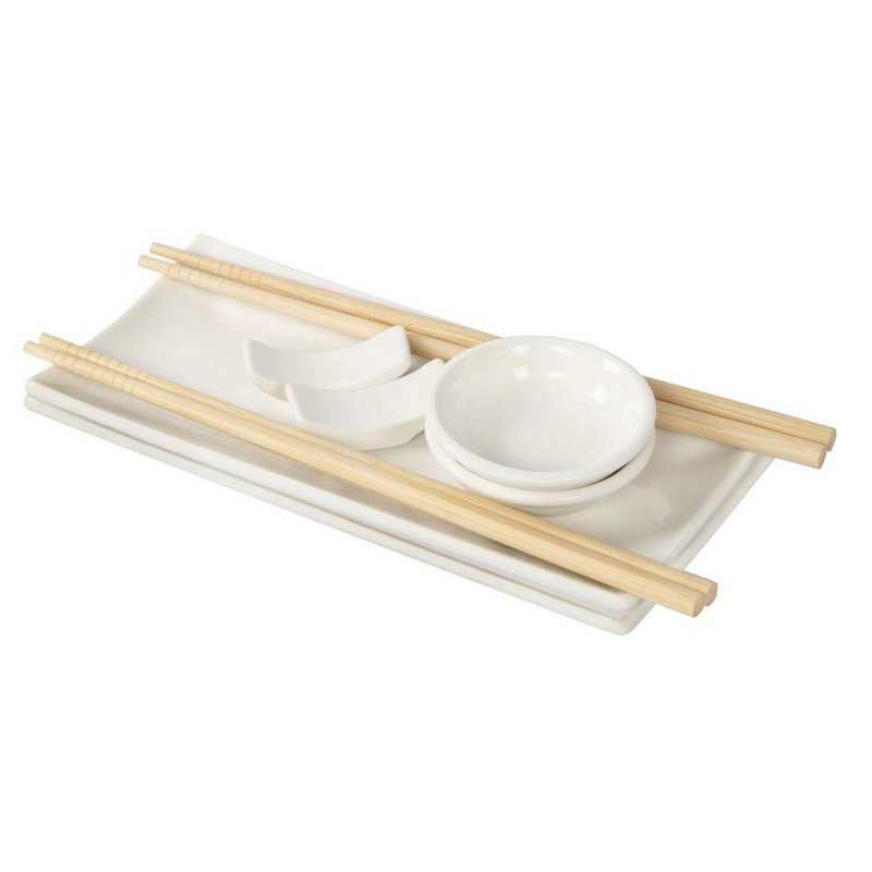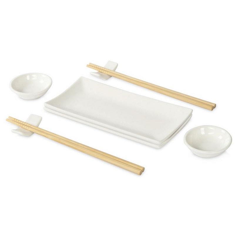 - Комплектность:блюдце для сервировки- 2шт., соусник- 2 шт., палочки для суши- 2 комплекта, подставка для палочек- 2 шт.