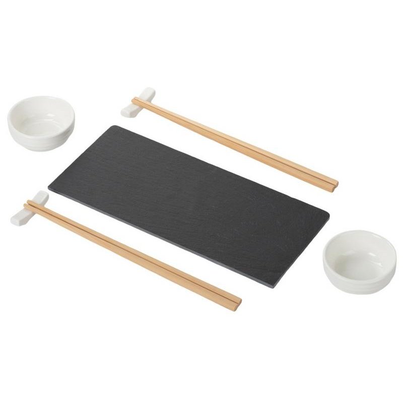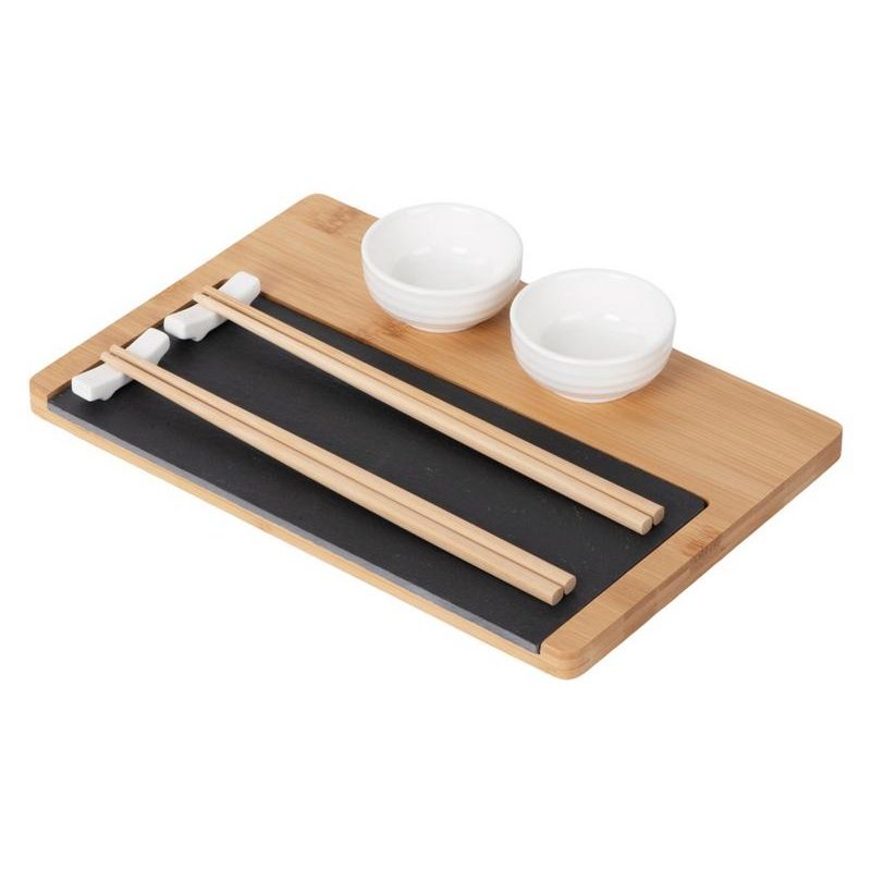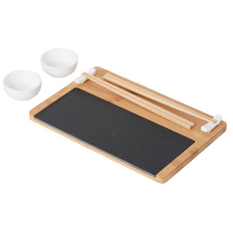 - Комплектность:подставка из бамбука и сланца, керамическая соусница 2 шт., набор палочек для суши 2 шт., подставки для палочек 2 шт.
