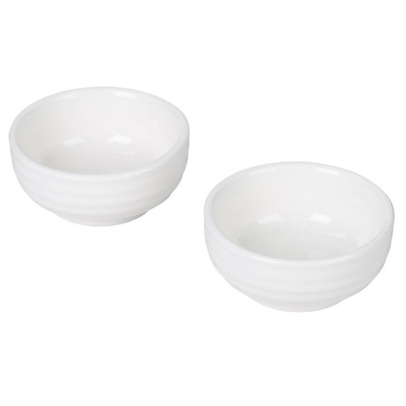 - Две керамические пиалы для соусов или гарниров, идеально подходящие для подачи соевого соуса, васаби, имбиря и других приправ.