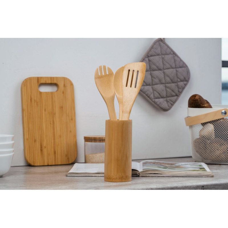 Набор кухонных принадлежностей станет незаменимым помощником на кухне. Лопатки и подставка изготовлены из экологичного материала — бамбука. Изделия из бамбука не впитывают запахи и обладают высокой износостойкостью, так что набор прослужит вам долгое время.