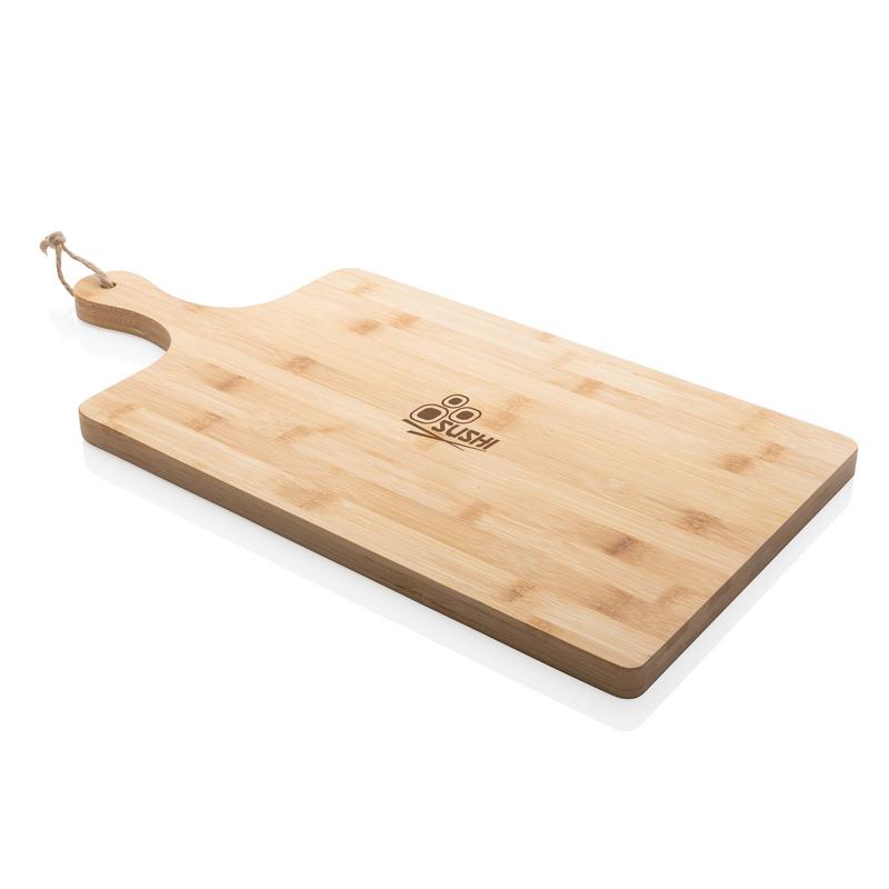 Сервировочная доска из бамбука прекрасно подойдет для подачи сыра, мяса или других закусок. Кроме того, вы можете использовать ее как разделочную, что делает ее незаменимым помощником на кухне. Поставляется в подарочной крафтовой коробке. Доска не обработана маслом, но вы можете сделать это самостоятельно при желании. Не подходит для посудомоечной машины, мыть только вручную.
