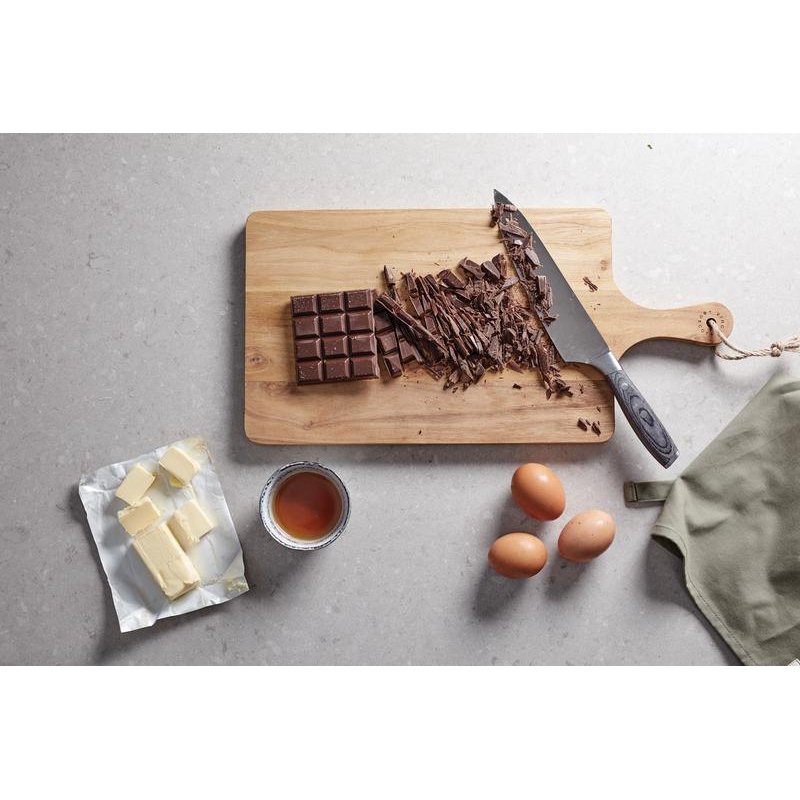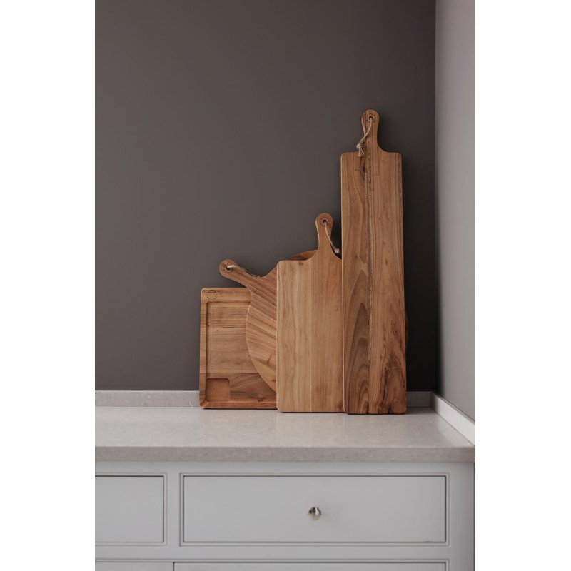 Стильная доска украсит любую кухню. Большая площадь позволяет использовать ее и как разделочную, и как сервировочную. Изготовлена из натурального тика, сертифицированного FSC, древесина которого со временем темнеет и становится еще красивее. Высокое содержание масла защищает доску от влаги.