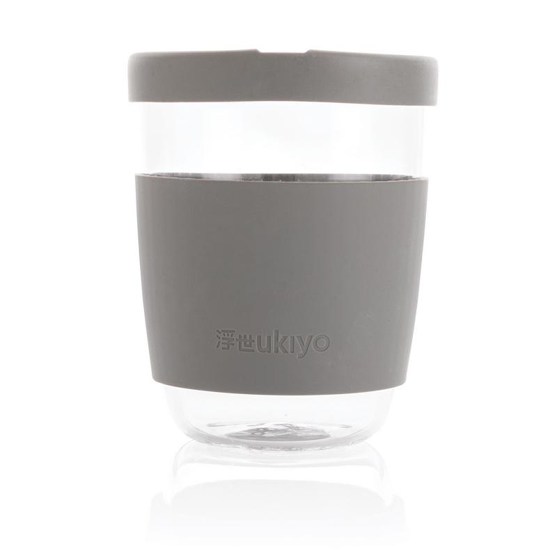 Наслаждайтесь любимыми напитками с помощью этого стильного стакана Ukiyo из боросиликатного стекла с силиконовой крышкой и держателем. Минималистичный дизайн и удобство использования. Небольшое отверстие в крышке сделано специально для отведения пара. Не содержит BPA. Объем 360 мл.