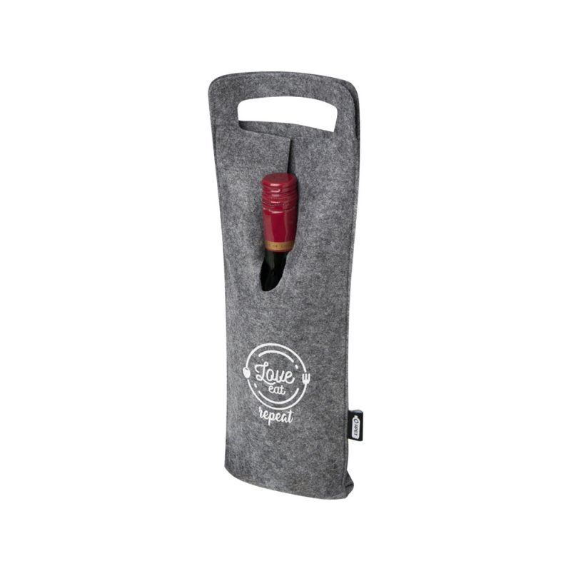 Сумка для вина, изготовленная из мягкого и прочного переработанного фетра, сертифицированного согласно GRS, имеет четкую форму и ручки для удобной переноски. Емкость: 75 сантилитров. GRS certified recycled polyester.