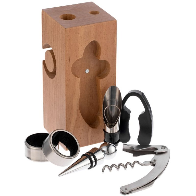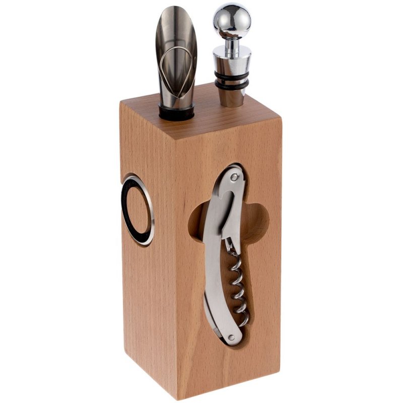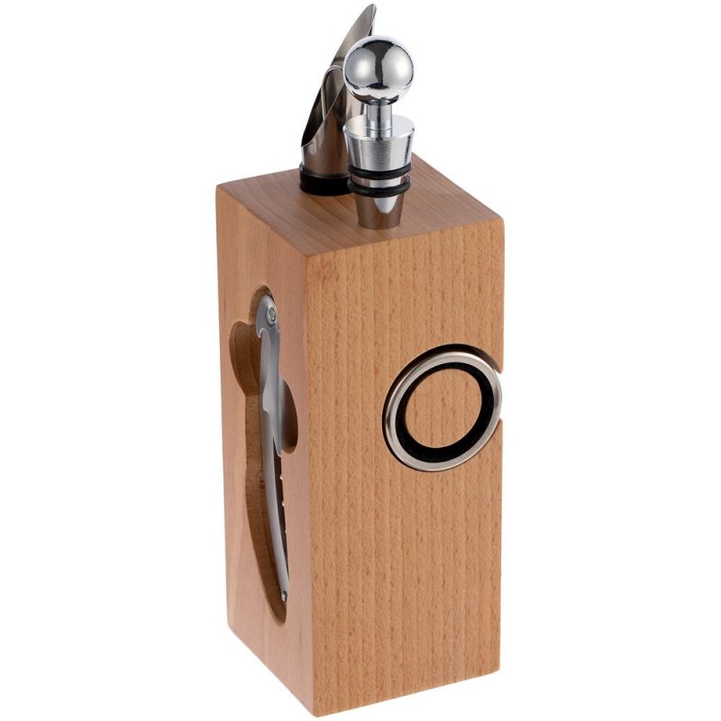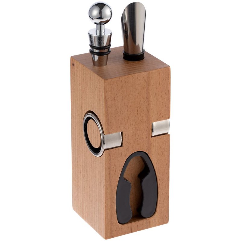- Материал:подставка - дерево, бук; штопор - нержавеющая сталь; каплеуловитель - нержавеющая сталь; аэратор - нержавеющая сталь, силикон; пробка - нержавеющая сталь, силикон; нож для фольги - пластик, нержавеющая сталь