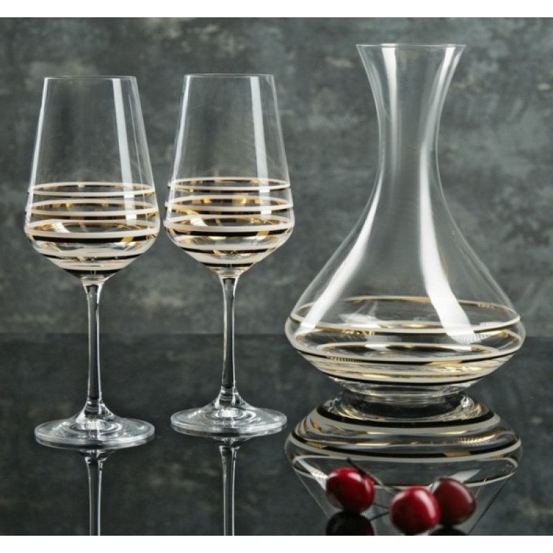В набор входит: декантер объемом 1,5 л и два бокала по 450 мл