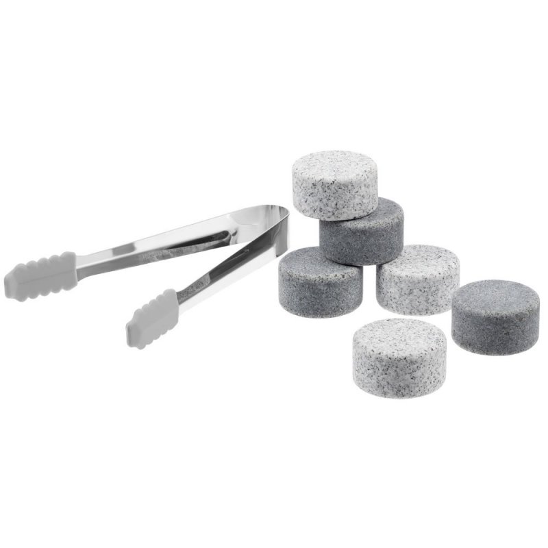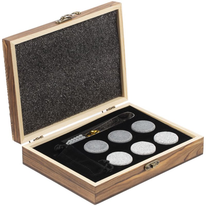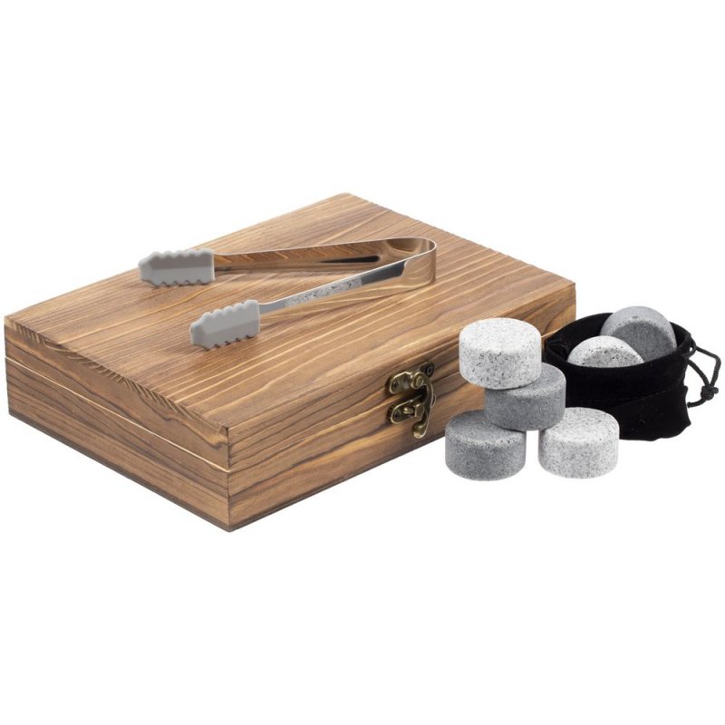 В наборе щипцы и 6 камней для виски в подарочной деревянной коробке. Перед использованием камни нужно охладить в морозильной камере.