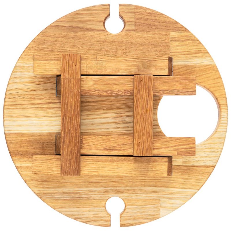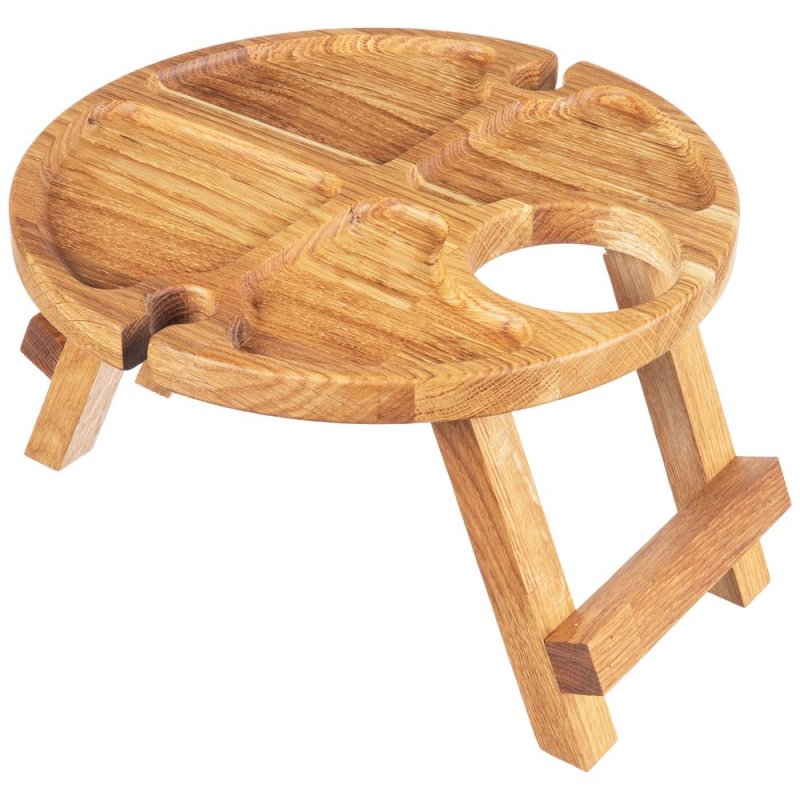 Ножки стола легко складываются, что обеспечивает его мобильность и удобство в путешествиях.