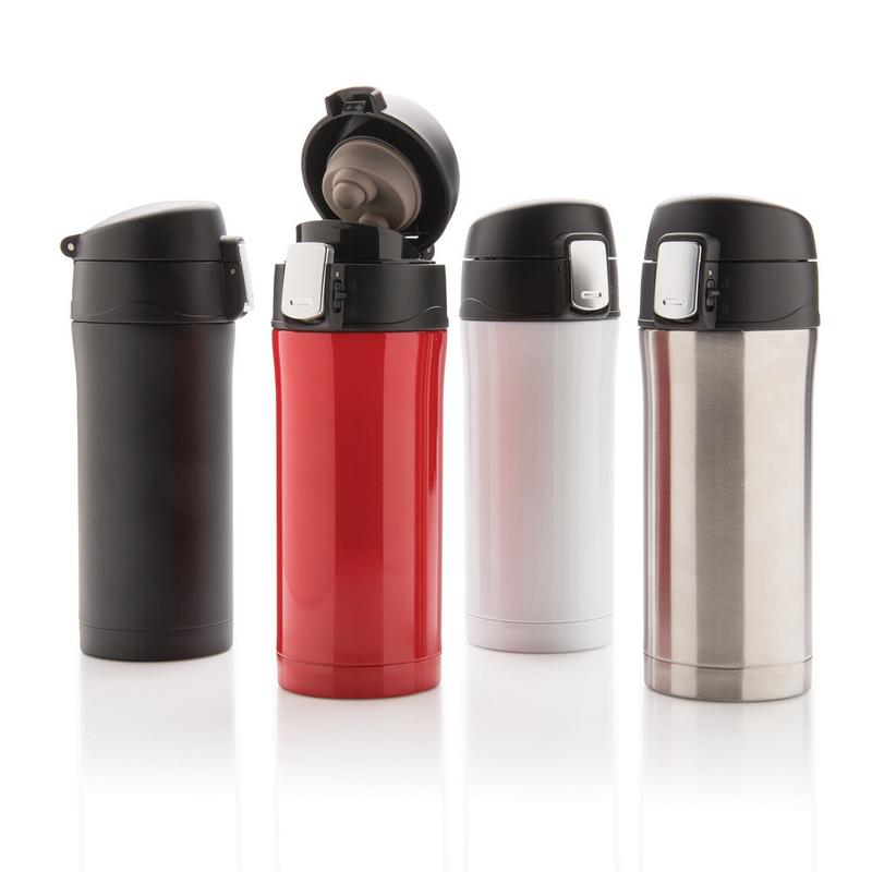 Термокружка Easy lock объемом 300 мл с двойными стенками из нержавеющей стали сохранит температуру горячего чая или кофе до 5часов и холодного напитка до 15часов. Запирающаяся крышка полностью устраняет риск протекания или пролива. Крышка легко моется в том числе, в посудомоечной машине. Уникальный дизайн идеально подходит для того, чтобы держать, открывать и закрывать термокружку одной рукой. Размер термокружки подходит для всех автомобильных подстаканников.