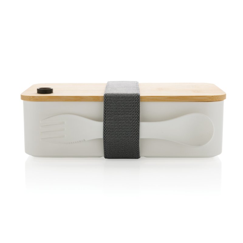 С этим стильным ланч-боксом из переработанного полипропилена, сертифицированного RCS, вы не останетесь без обеда или перекуса на работе или на пикнике, на прогулке или в поездке. Ланч-бокс состоит из двух отделений, которые можно регулировать съемной перегородкой. На бамбуковой крышке есть отверстие для вывода пара. В комплект входят эластичный ремешок из rPET и ложка-вилка. Объем ланч-бокса — 1,4 литра. Упаковано в крафтовую коробку, сертифицированную FSC® mix. Количество переработанных материалов, которые использовались при создании ланч-бокса, составляет 44% от общего веса изделия. Сертификация RCS обеспечивает полный контроль цепочки поставок вторичных материалов.