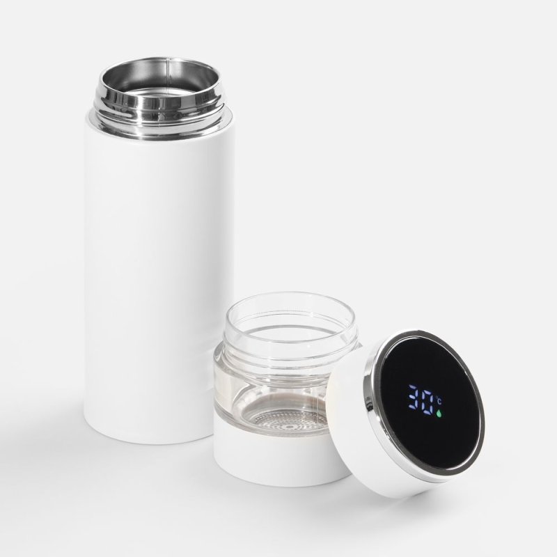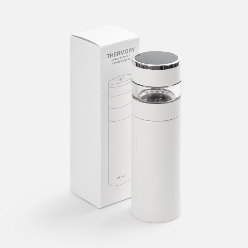 Умная термобутылка для заваривания Thermory отображает температуру жидкости на ЖК-дисплее: точные данные собирает встроенный в крышку датчик. Стенки из нержавеющей стали и вакуумная изоляция корпуса сохраняют напитки горячими (60 °C) в течение 8 часов или прохладными (10 °C) в течение 12 часов.