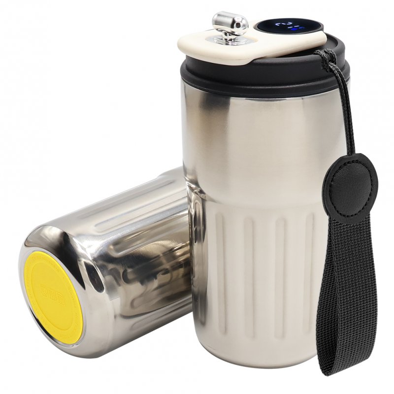 Термокружка Ashly с дисплеем выполнена из пищевой нержавеющей стали. Объем 400 мл. Имеет двойные стенки с вакуумной изоляцией, крышка изготовлена из пищевого безопасного для человека пластика. Особенностью термокружки Ashly является наличие сенсорного индикатора температуры, расположенного в крышке. Чтобы узнать температуру напитка внутри кружки, достаточно прикоснуться к поверхности крышки. Помимо этого, термокружка Ashly очень удобна в использовании. Просто нажмите на клапан в направлении дисплея, чтобы открыть верхнюю часть крышки и насладиться любимым напитком. Элегантный дизайн, удобство и функциональность - вот что делает термокружку Ashly незаменимым аксессуаром для всех любителей горячих и холодных напитков.