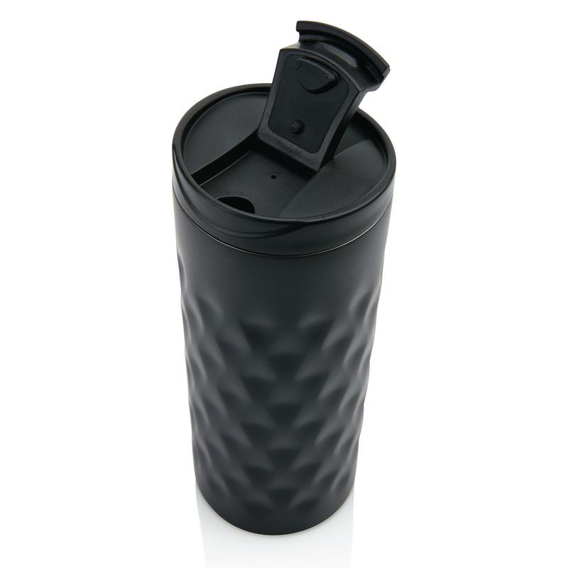 Герметичная термокружка с двойными стенками, изготовленная из нержавеющей стали, выделяется своим оригинальным дизайном, основанным на строгой геометрии форм. Объем кружки 350 мл.