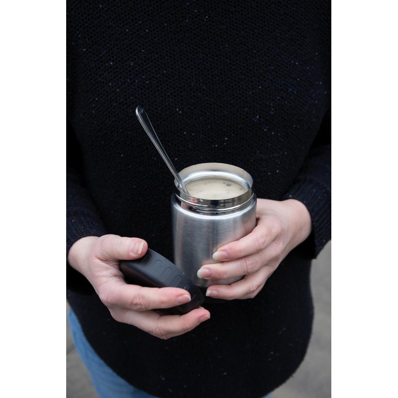 Герметичный вакуумный контейнер для еды сохранит температуру горячих блюд до 5 часов, холодных – до 15 часов. Внутренняя стенка выполнена из нержавеющей стали марки 304, внешняя – из нержавеющей стали марки 201. Объем: 300 мл.