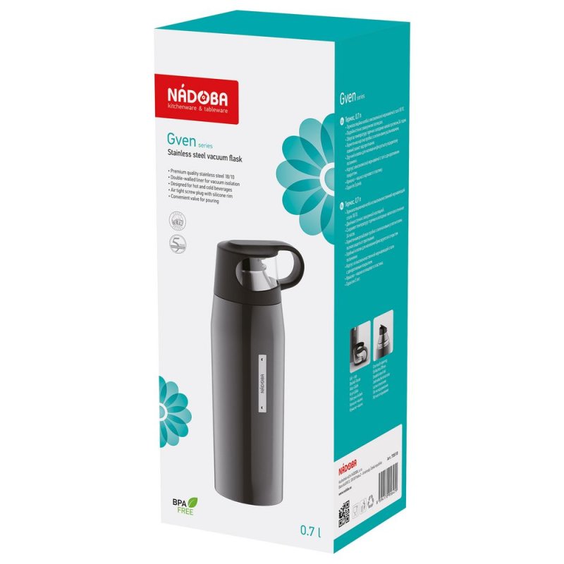 - Материал:корпус - нержавеющая сталь, 18/10; пробка, крышка - пластик