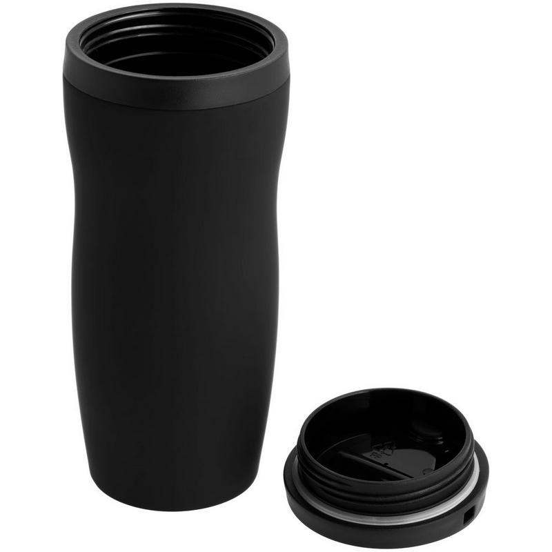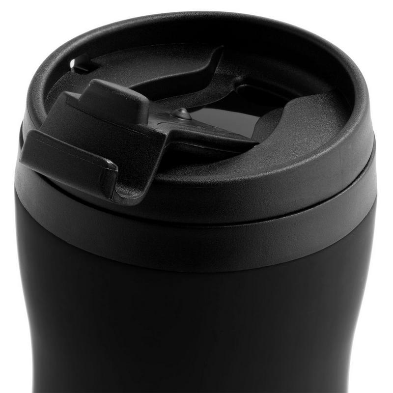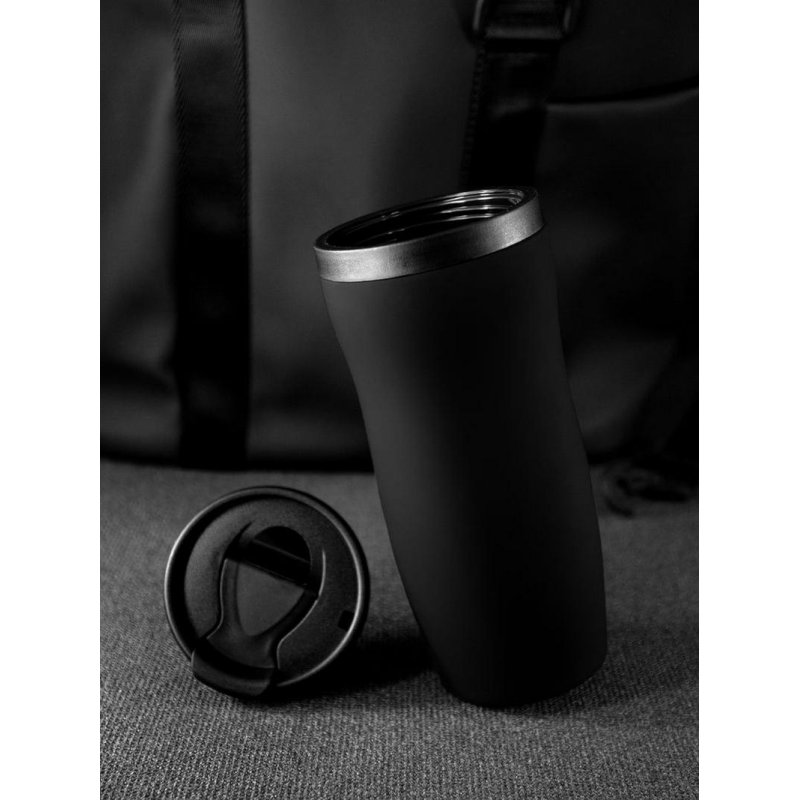 Двухслойная конструкция из нержавеющей стали снаружи и пищевого пластика внутри. Герметичная завинчивающаяся крышка с откидным клапаном для питья. Покрытие софт-тач. В отверстие в крышке можно вставить шнурок для удобного ношения стакана на руке. Шнурок в комплект не входит.