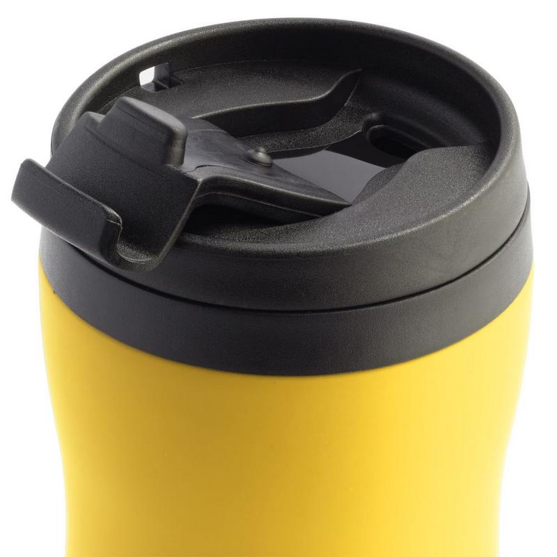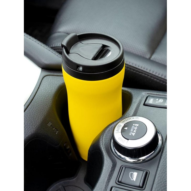 Двухслойная конструкция из нержавеющей стали снаружи и пищевого пластика внутри. Герметичная завинчивающаяся крышка с откидным клапаном для питья. Покрытие софт-тач. В отверстие в крышке можно вставить шнурок для удобного ношения стакана на руке. Шнурок в комплект не входит.